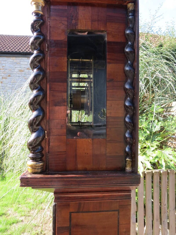 The case is a very good example of the much sought-after ‘William & Mary’ style. It is an original old case and as such has various defects. However it presents very well, I hope the pictures convey this. These cases can sometimes be over-restored and lose their patination/ character.