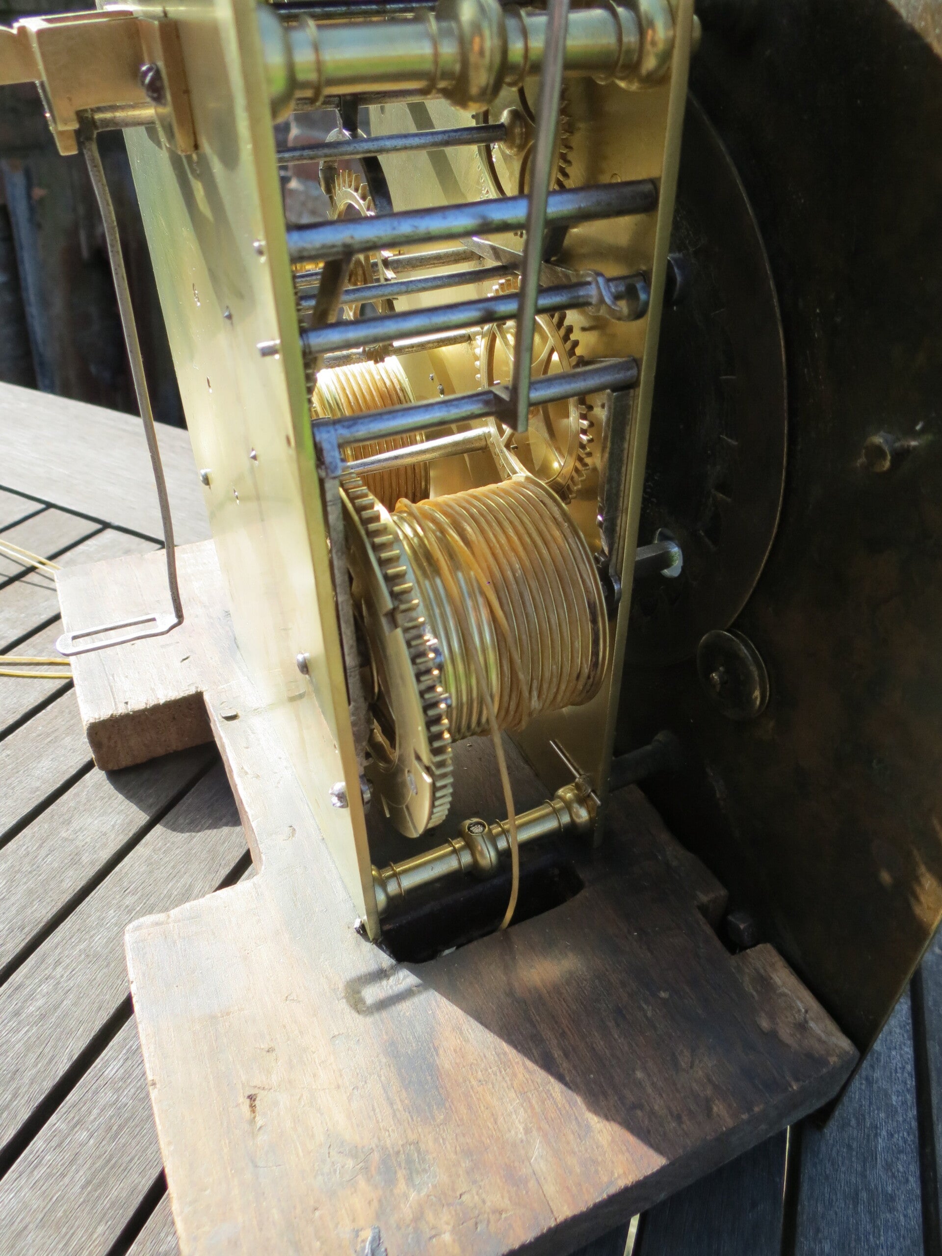 The dial is unusual for the period in not having a seconds subsidiary, perhaps a customer request or just to make the dial look less fussy? Another Windmills longcase recently sold at auction with the same format so not unique. Inspection of the movement shows that it was never intended to have a seconds hand, no extra ‘stub’ to the seconds arbour etc.