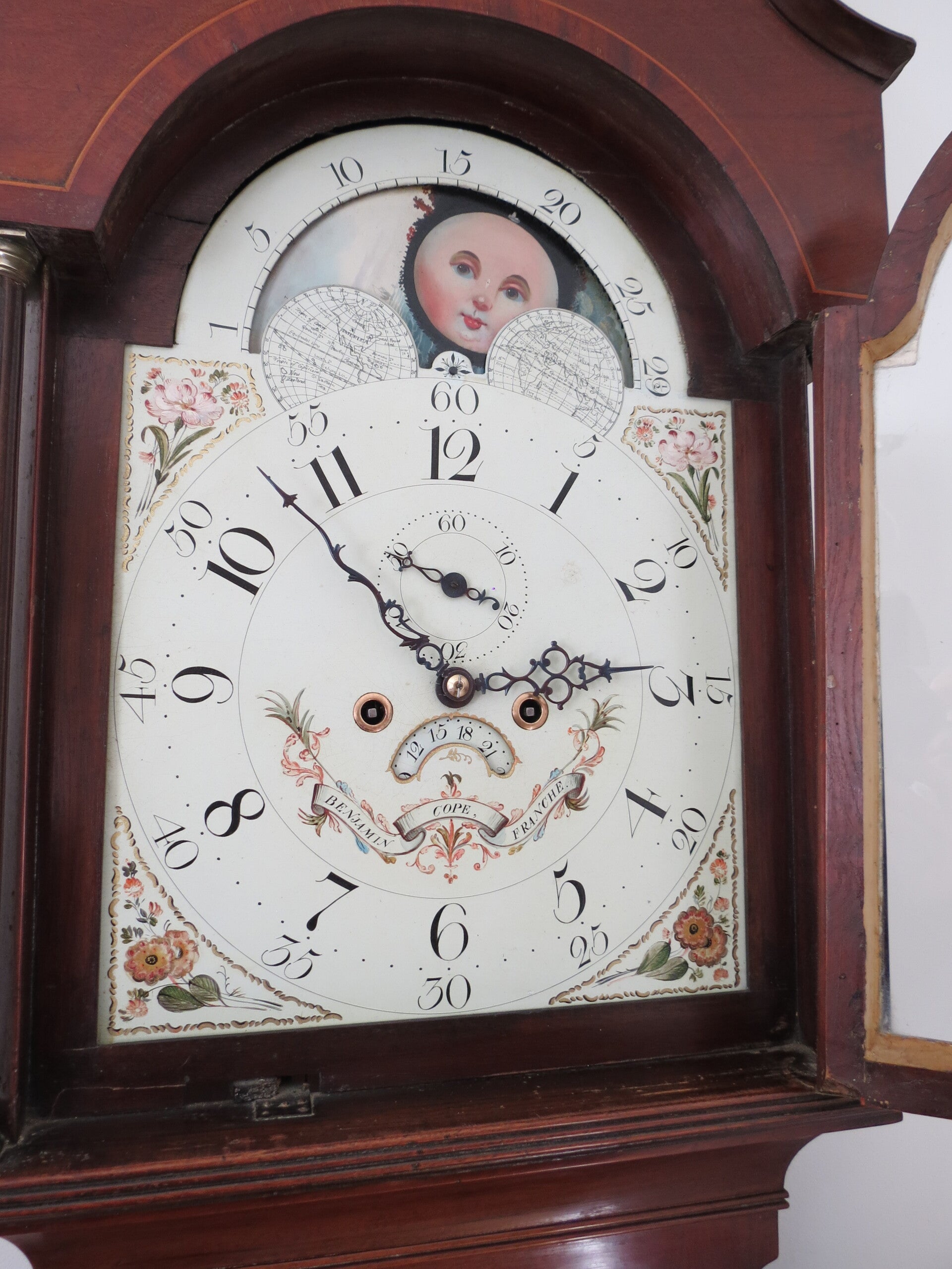 Benjamin Cope, Franche. C1800. A moon-phase, 8-day, mahogany cased longcase clock